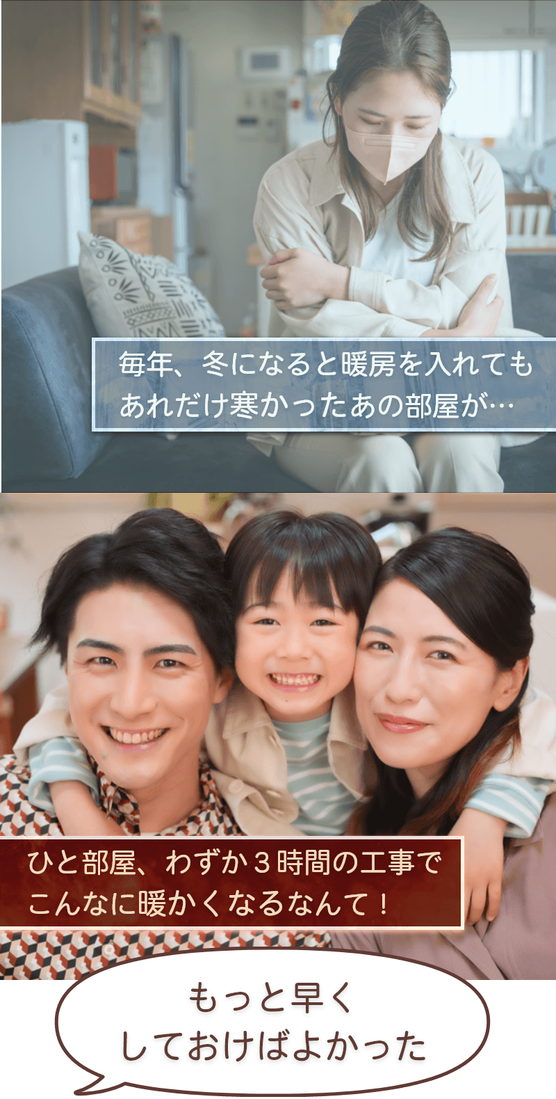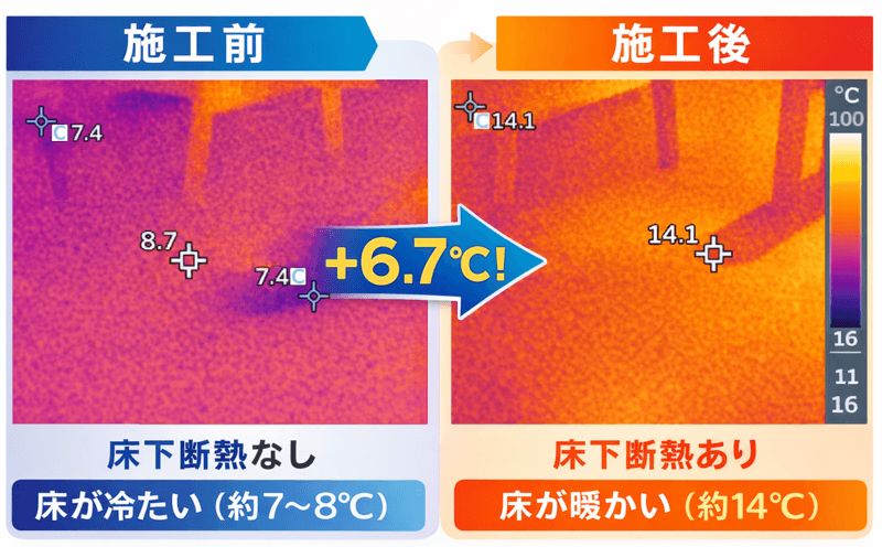 一度の工事で、床下からの寒さを