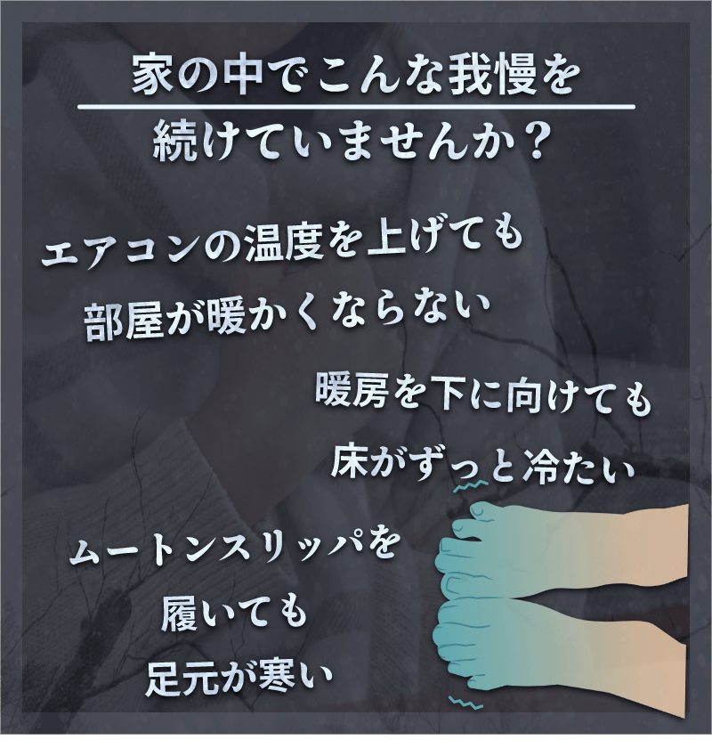 ②冷たくなった床が、足元から部屋をどんどん冷やしていきます。